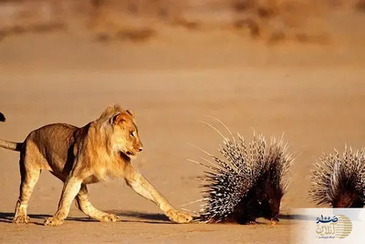 - ببینید/ لحظه نادر تقابل شیر جوان با جوجهتیغی در طبیعت