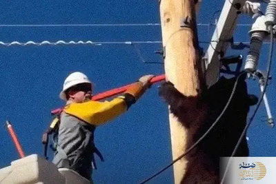 - ببینید/ عملیات نفسگیر برای نجات خرس از بالای تیر برق