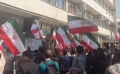- فیلم/ به آتش کشیدن پرچم آمریکا و اسرائیل در مقابل دانشگاه شرف