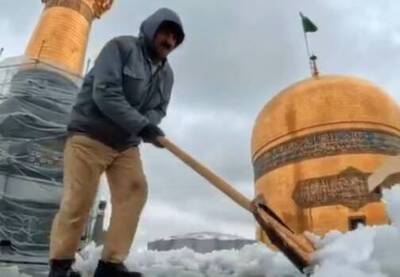 - فیلم/ برفروبی پشتبام حرم امام رئوف