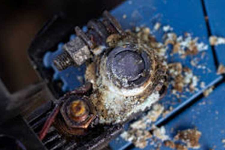 هرگونه بوی تند شبیه به گوگرد یا تخم مرغ گندیده در اطراف باتری، نشاندهنده یک مشکل جدی است. این بو معمولاً ناشی از انتشار گاز هیدروژن و سولفید هیدروژن است که اغلب به دلیل شارژ بیش از حد (Overcharging) یا نقص داخلی باتری رخ میدهد. همچنین، مشاهده مایع مرطوب در اطراف بدنه یا قطبها (که الکترولیت نشت کرده است) یک نشانه باتری فرسوده است و باید فوراً رسیدگی شود، زیرا اسید سولفوریک به قطعات فلزی اطراف آسیب میرساند.