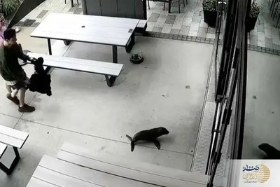 - ببینید/ تعقیب و گریز بامزه یک بچهفوک با پیتزا در کافه